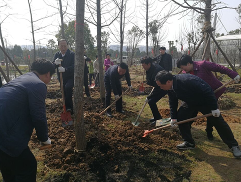 为加快推进生态化蔡甸建设,2月26日上午,区委书记刘子清、区长彭巧娣带领区四大家领导来到后官湖国家湿地公园,开展义务植树活动,为中法示范城增绿添彩,全力共建美好家园。
